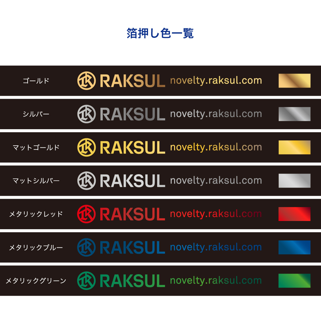 箔押し印刷 | 凸型の金属板を使用し、箔フィルムを熱と圧力で転写する | 高級感がある 剥がれやすい(長期利用に向かない) |
