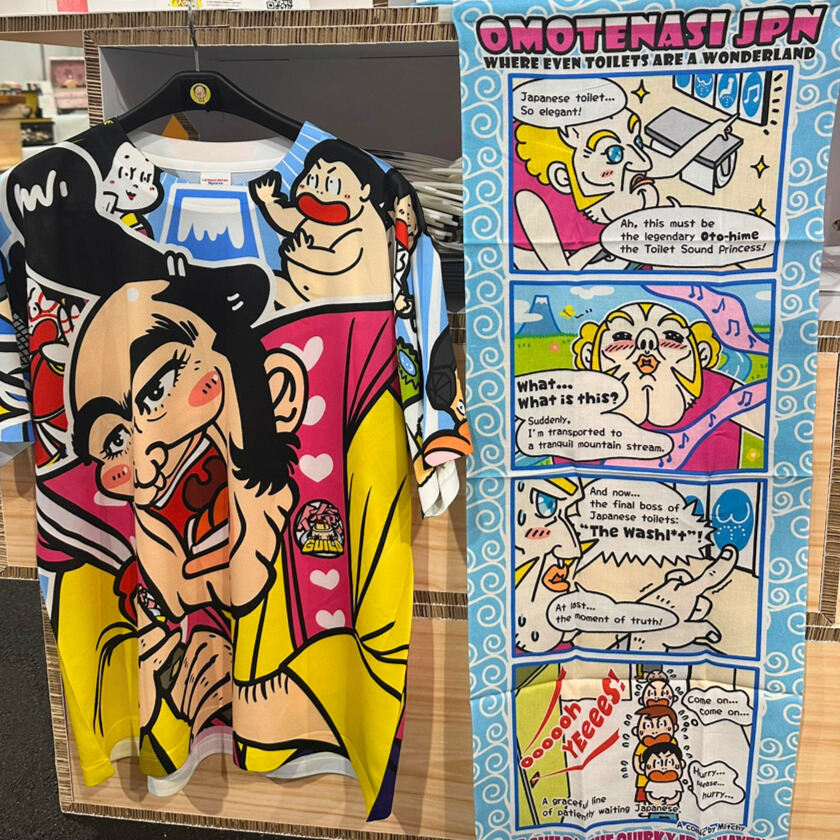 想定外だったのは、来場者に日本人が多かったことです。会場は日本国際芸術祭で、インバウンドの方が多いと想定していましたが、実際には日本語が飛び交う場面が多く、英語で描いた漫画への反応は想像していたほどではありませんでした。それでも、海外の方からグレイトと声をかけてもらう場面もあり、手ぬぐいにここまで綺麗に印刷できる点そのものには、しっかりとした手応えを感じました。