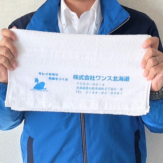 まずコストが手頃だったことと、デザインの載せやすさが大きかったです。他社もチェックしたんですが、価格と使いやすさのバランスが良かったのはラクスルでした。クライアントさんがお掃除業ということもあって、タオルは普段から使うものなので、実用的でいいんじゃないかという話にもなりました。配る相手を選ばず、誰でも使ってもらえるのも決め手になりました。