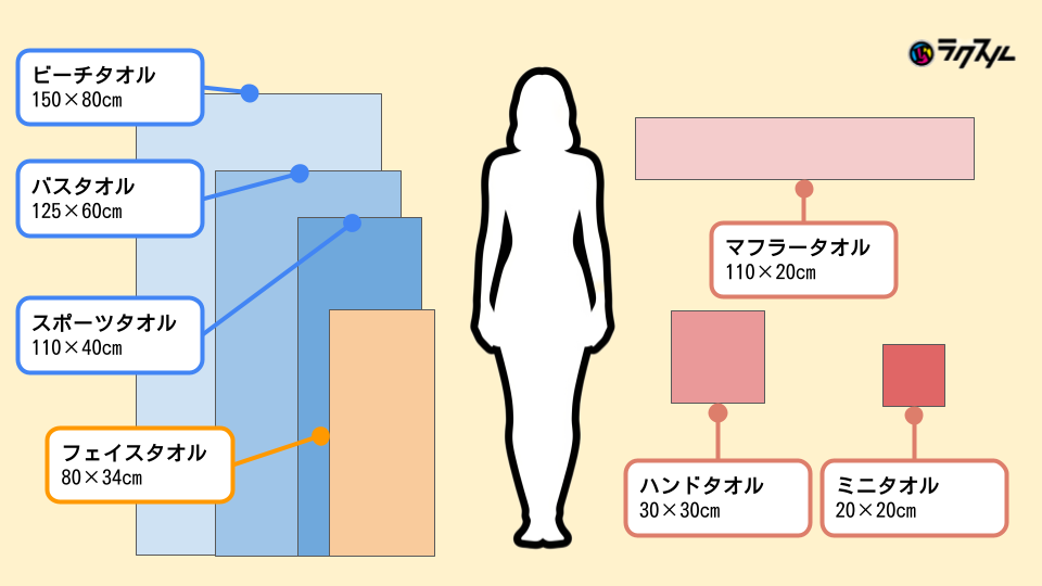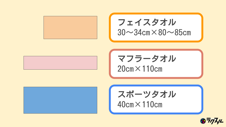 | タオル種類 | 縦幅の目安 | 横幅の目安 | 形の特徴 | 用途例 |