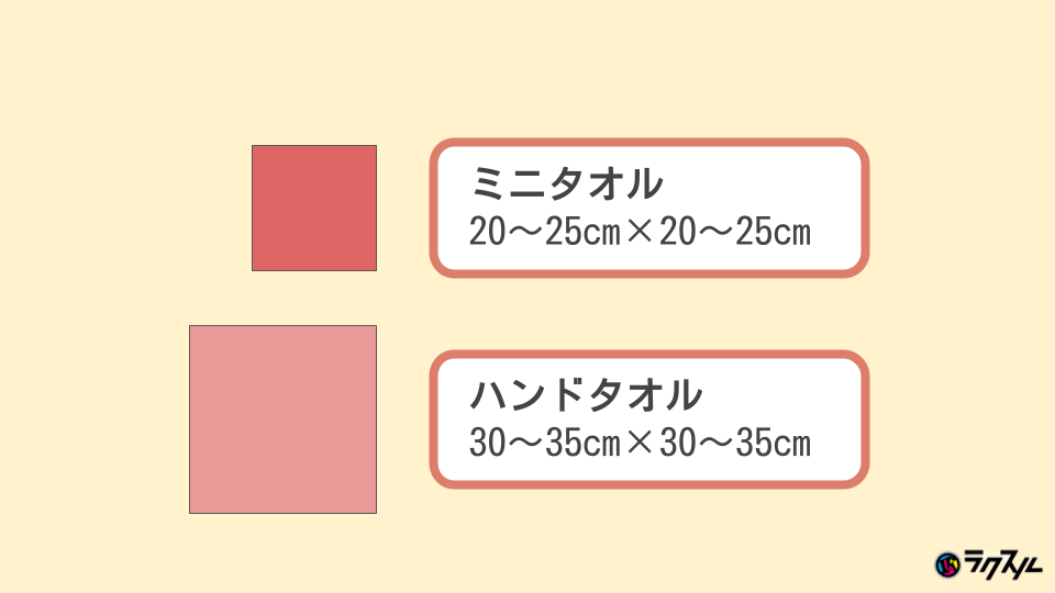 ミニタオル、ハンドタオルともに、手拭き用かつ携帯向けのタオルです。