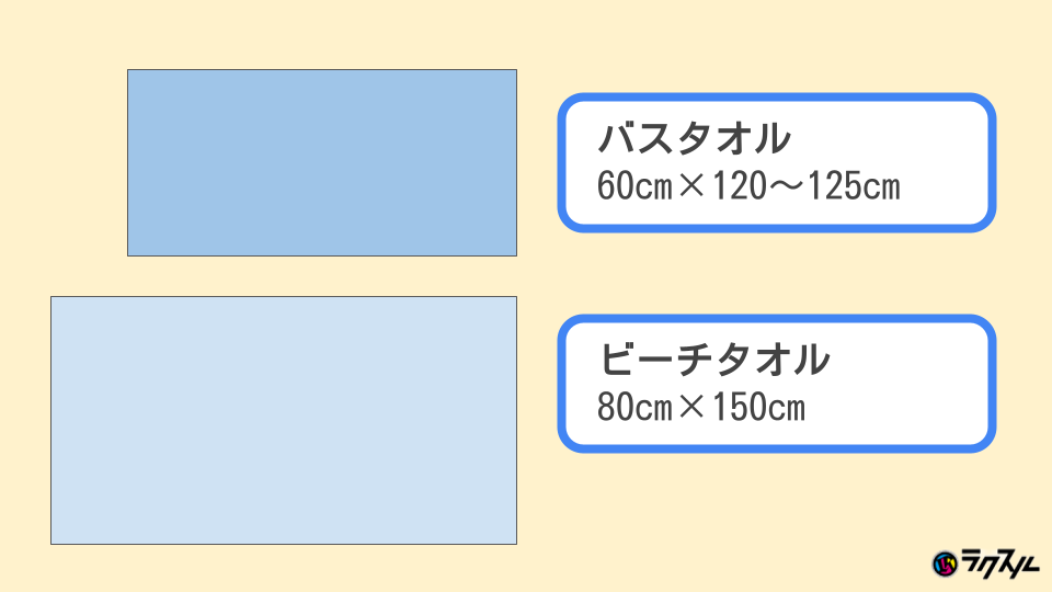 バスタオルは、湯上りの水分量を十分に拭き取れるサイズのタオルです。乳幼児用のタオルケットや敷物としても使われます。一般的なバスタオルは60×120cmです。