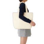 厚手キャンバスマルチトートはペットボトルが入るサイドポケット付きでA3サイズが収納可能な14オンスコットン生地が使用されたマルチトートバッグです。本体サイズは450mm×360mm×130mmです。
