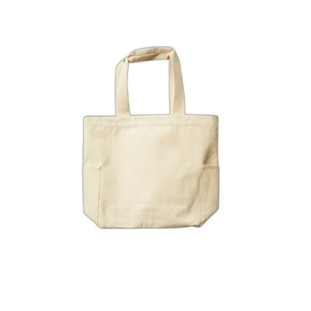 お問い合わせフォームはこちら厚手キャンバスマルチトートはペットボトルが入るサイドポケット付きでA3サイズが収納可能な14オンスコットン生地が使用されたマルチトートバッグです。本体サイズは450mm×360mm×130mmです。