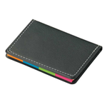 【短納期】レザー調フセンブック 2サイズ5色は、ステッチの入った高級感のあるレザー調カバーと、目印用・メモ用の2サイズ5色のフセンメモのセットです。