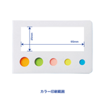 お問い合わせフォームはこちら【短納期】カバー付フセンメモ インデックス 5色は、ミニサイズのフセン5色を名刺サイズのカバーとセットにした商品です。印刷面が白地なので、名入れも目立ちます。