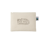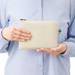 お問い合わせフォームはこちらフェアトレードコットンを使用したキャンバスポーチです。 10オンスの厚みがあるので中身が透けることもなく、丈夫な生地感になります。 ステーショナリーやスマホギア周りアイテムを入れるのがおすすめのサイズ感です。 サイズはSサイズ・Mサイズ・Lサイズの3サイズ展開しており、 ご利用用途によって使い分けがしやすい商品です。 国際フェアトレード認証ラベル付きのアイテムとなっており、 SDGsやサスティナブルへの取り組みで企業価値を高められます。 染色工場もフェアトレード認定工場で生産されており、 染料は、GOTSで承認されている染料を使用しています。 ▼フェアトレードとは? フェアトレードとは発展途上国の原料や製品を適正な価格で購入することで、そのような国の人々の生活改善や自立を支援する活動です。 当製品に使用されているコットンもフェアトレード認証生産者から基準に従って調達された認証コットンです。 ▼国際フェアトレード認証コットンラベルとは? 国際フェアトレード認証ラベルは、その原料が生産されてから、輸出入、加工、製造工程を経て「国際フェアトレード認証製品」として完成品となるまでの各工程で、国際フェアトレードラベル機構(Fairtrade International)が定めた国際フェアトレード基準が守られていることを証明するラベルです。 つまり、この商品はフェアトレードだという証明書や目印のような役割をしています。 <a href="www.fairtrade-jp.org" target="_blank">フェアトレード・ラベル・ジャパン公式サイト ▼GOTS認証とは Global Organic Textile Standardの略でオーガニック繊維で作られた製品のための テキスタイル製造・加工の国際基準