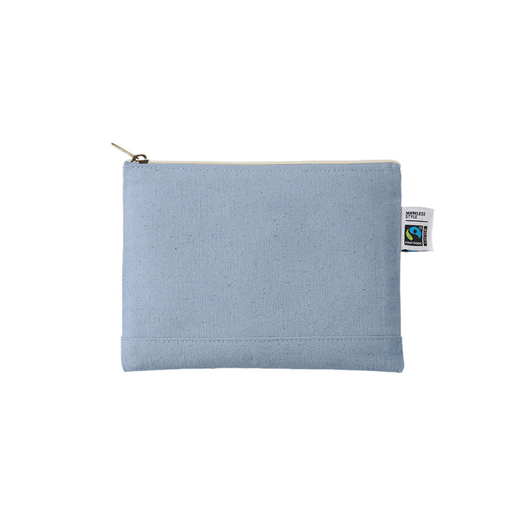 フェアトレードコットンを使用したキャンバスポーチです。 10オンスの厚みがあるので中身が透けることもなく、丈夫な生地感になります。 ステーショナリーやスマホギア周りアイテムを入れるのがおすすめのサイズ感です。 サイズはSサイズ・Mサイズ・Lサイズの3サイズ展開しており、 ご利用用途によって使い分けがしやすい商品です。 国際フェアトレード認証ラベル付きのアイテムとなっており、 SDGsやサスティナブルへの取り組みで企業価値を高められます。 染色工場もフェアトレード認定工場で生産されており、 染料は、GOTSで承認されている染料を使用しています。 ▼フェアトレードとは? フェアトレードとは発展途上国の原料や製品を適正な価格で購入することで、そのような国の人々の生活改善や自立を支援する活動です。 当製品に使用されているコットンもフェアトレード認証生産者から基準に従って調達された認証コットンです。 ▼国際フェアトレード認証コットンラベルとは? 国際フェアトレード認証ラベルは、その原料が生産されてから、輸出入、加工、製造工程を経て「国際フェアトレード認証製品」として完成品となるまでの各工程で、国際フェアトレードラベル機構(Fairtrade International)が定めた国際フェアトレード基準が守られていることを証明するラベルです。 つまり、この商品はフェアトレードだという証明書や目印のような役割をしています。 <a href="www.fairtrade-jp.org" target="_blank">フェアトレード・ラベル・ジャパン公式サイト ▼GOTS認証とは Global Organic Textile Standardの略でオーガニック繊維で作られた製品のための テキスタイル製造・加工の国際基準