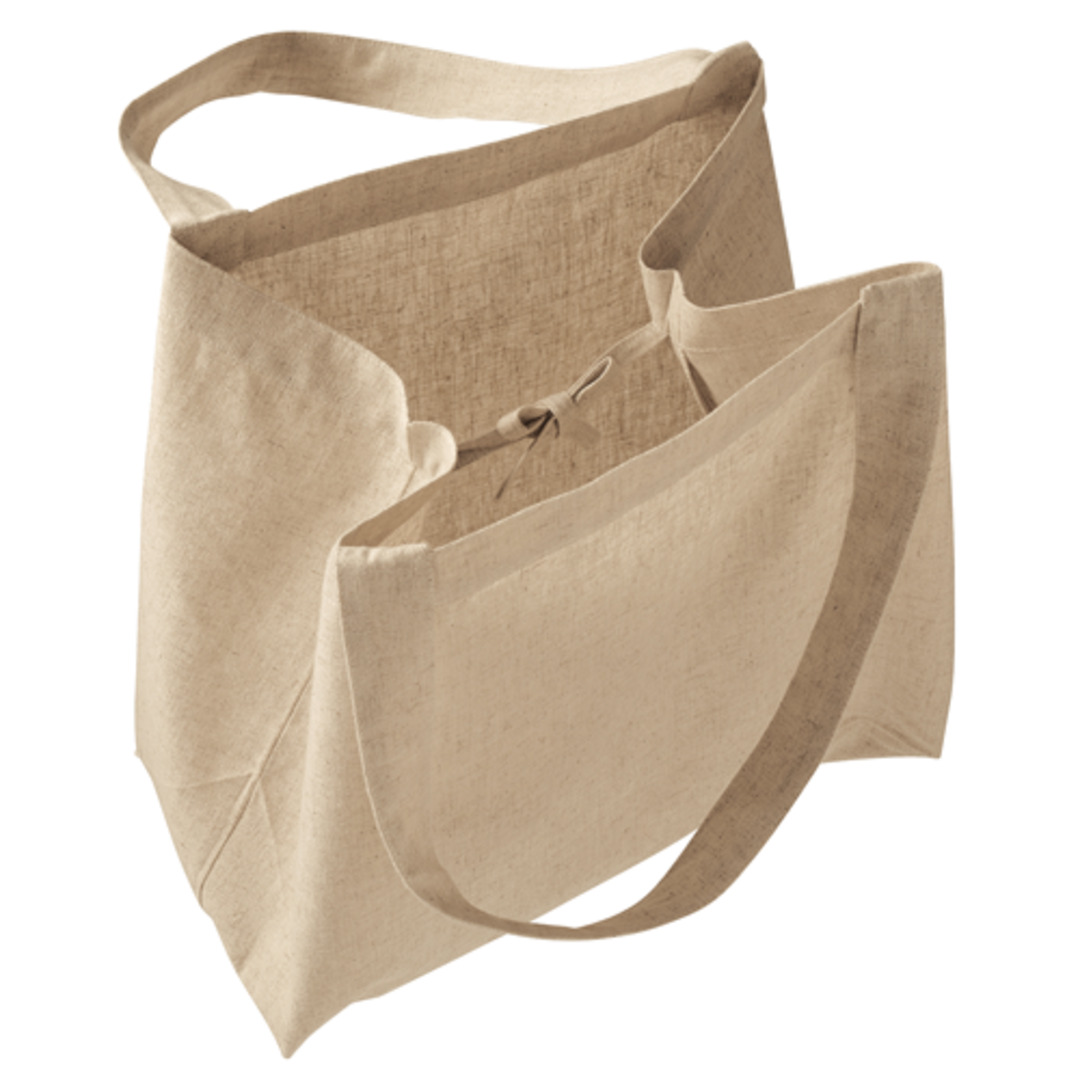 コットンリネンひも付きたっぷりトートはリネン(麻)とコットンの混紡生地が使用されたトートバッグです。