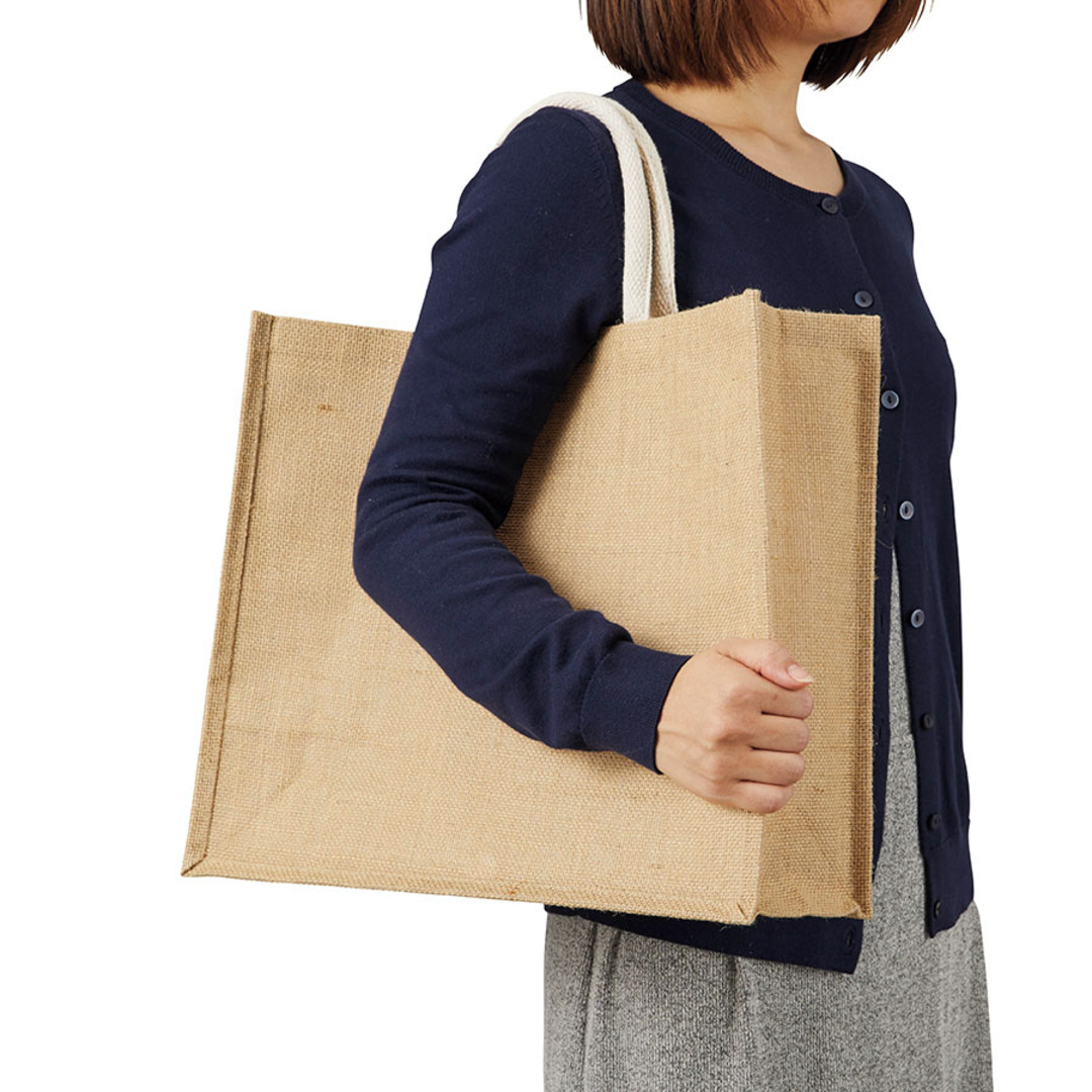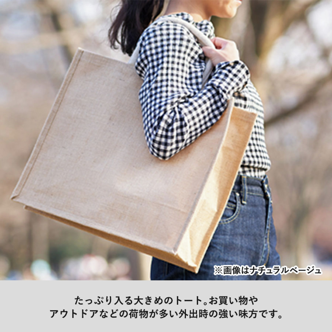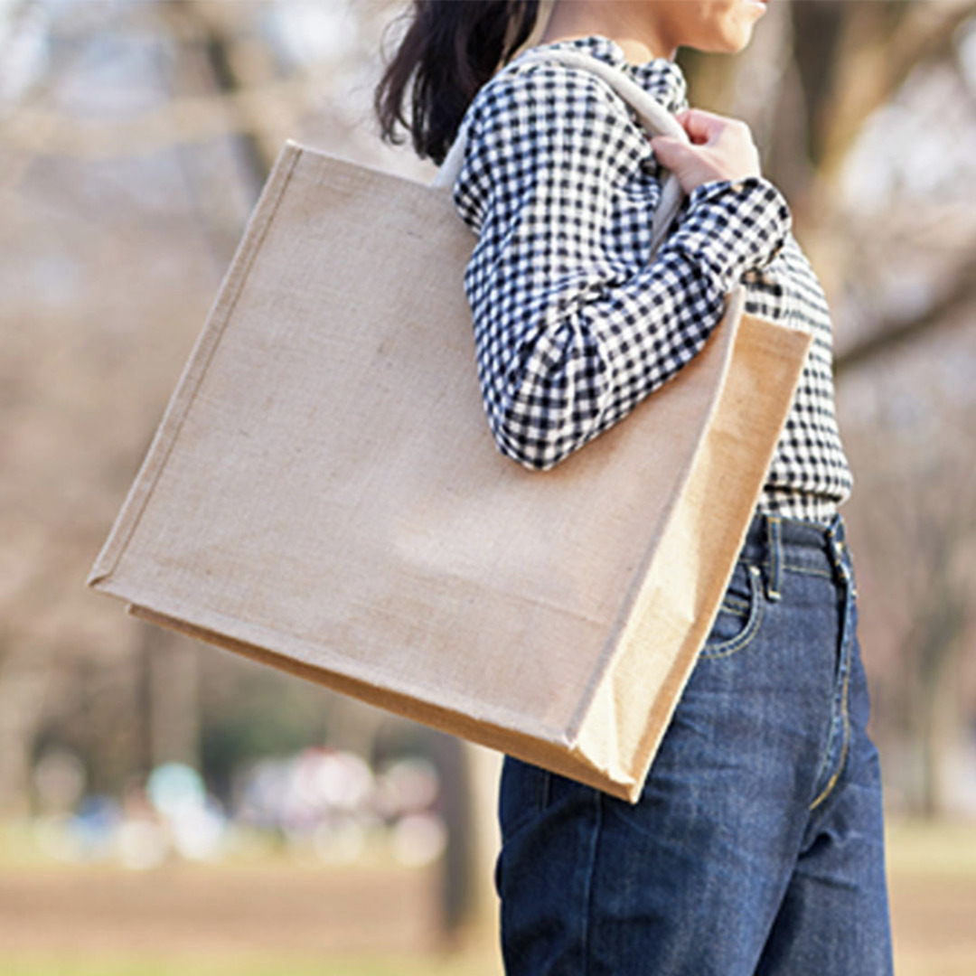 ジュートスクエアトート(L)は麻の一種であるジュート生地が使用されたLサイズのバッグです。