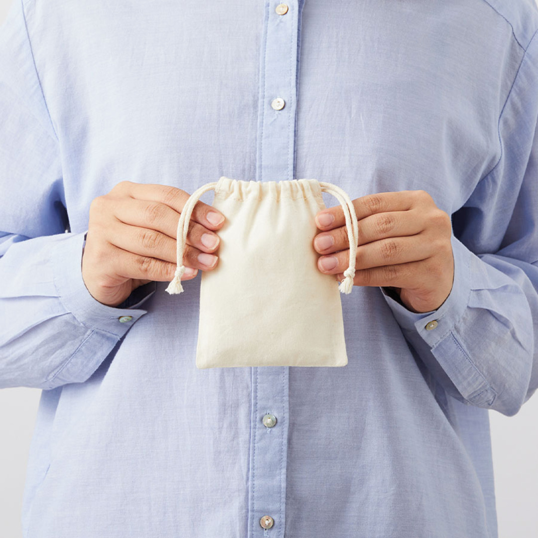オリジナルコットン巾着袋(S)はコットン生地が使用されたSサイズの巾着です。