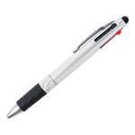 【短納期】タッチペン付3色ボールペン V010565は、ペン上部にタッチペンが付いた黒・赤・青の3色一体になった多色ボールペンです。