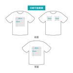 • ・縫製品の本体色がホワイトの場合は、白色のインクを使用せず印刷するため、入稿データ上白い部分にはインクが乗りません。
