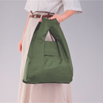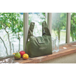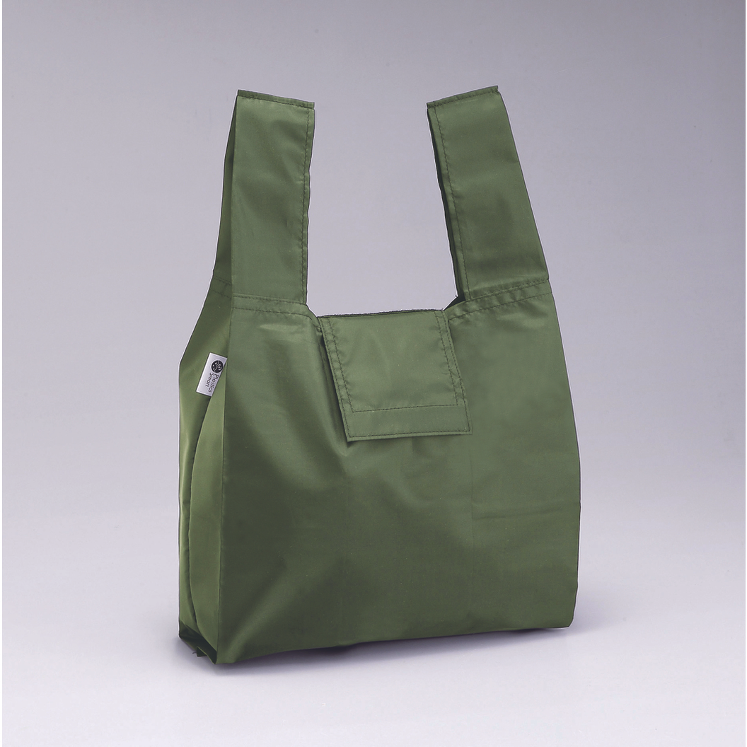 リフェロ・再生PETマイバッグは使用済みペットボトル等を原料とする再生PETをが使用されたマチ付きエコバッグです。収納時のサイズは105mm×45mm×20mmとコンパクト、使用時の本体サイズが290mm×300mm×120mmです。
