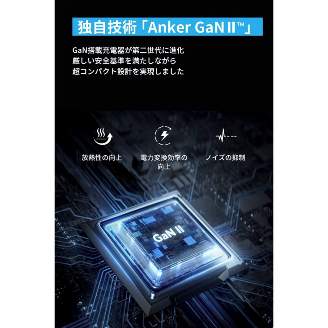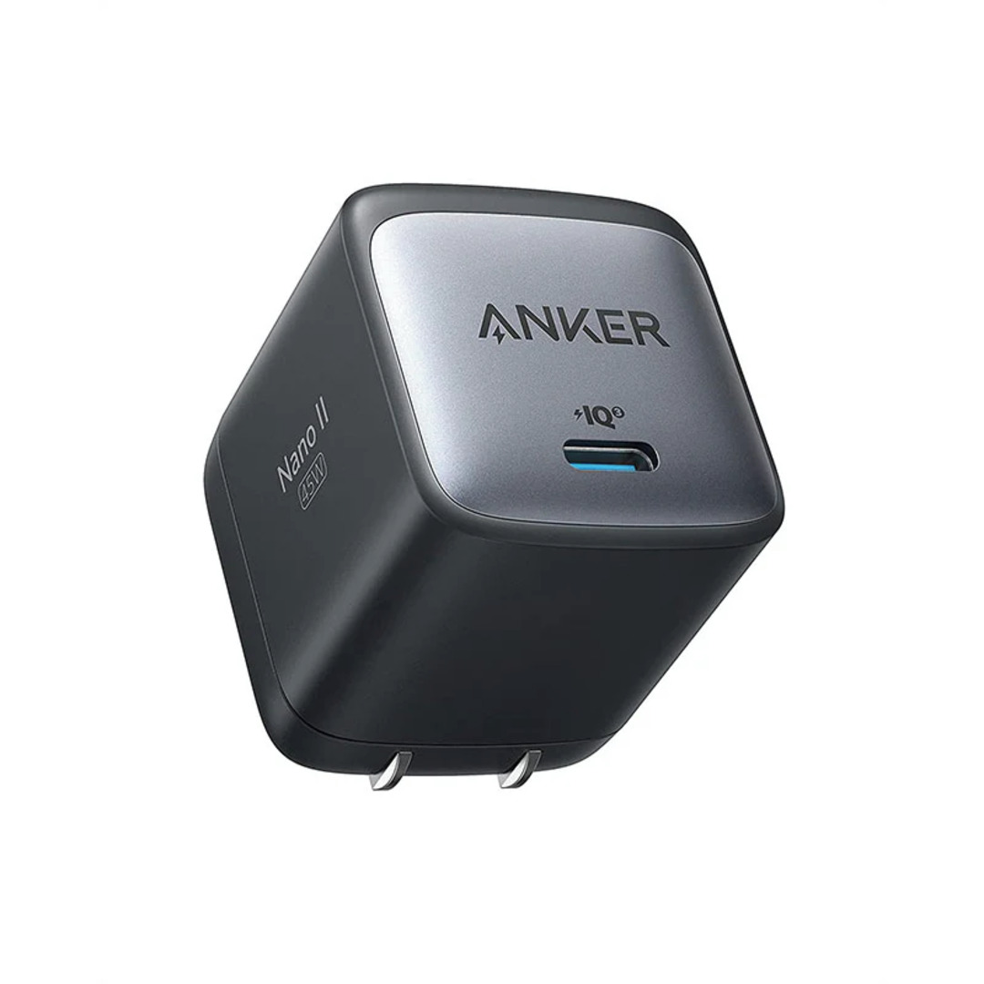 お問い合わせフォームはこちらAnker NanoII 急速充電器 45W 1ポート Type-Cは、一般的な5W出力の充電器に比べ、最大3倍速く充電可能なAC充電器です。(iPhone14を0%から30分充電した場合での比較/Anker調べ) 本体サイズは約35mm×38mm×41mmで、ブラックとホワイトの2色展開。 最大45W出力でPCも充電可能で、Anker独自技術「Anker GaN II」と独自の多重保護システムが搭載されています。 わずか4cm四方に収まる超コンパクト設計の折りたたみプラグで、カバンやポケットにスムーズに収納できます。