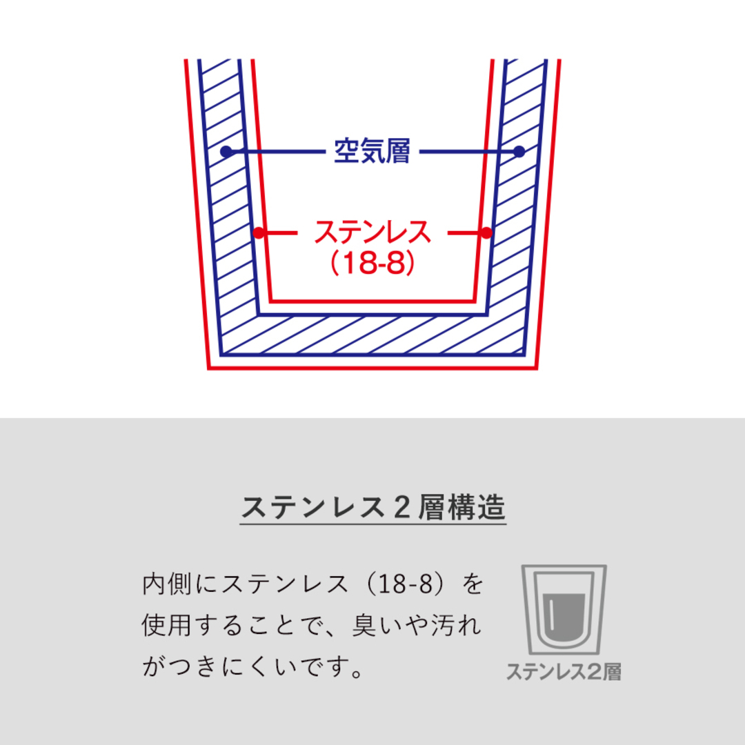 シンプルなデザインがおしゃれなステンレス素材。サーモ(保冷・保温)機能もついているので、飲み物を長時間楽しめます。