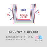 シンプルなデザインがおしゃれなステンレス素材。サーモ(保冷・保温)機能もついているので、飲み物を長時間楽しめます。