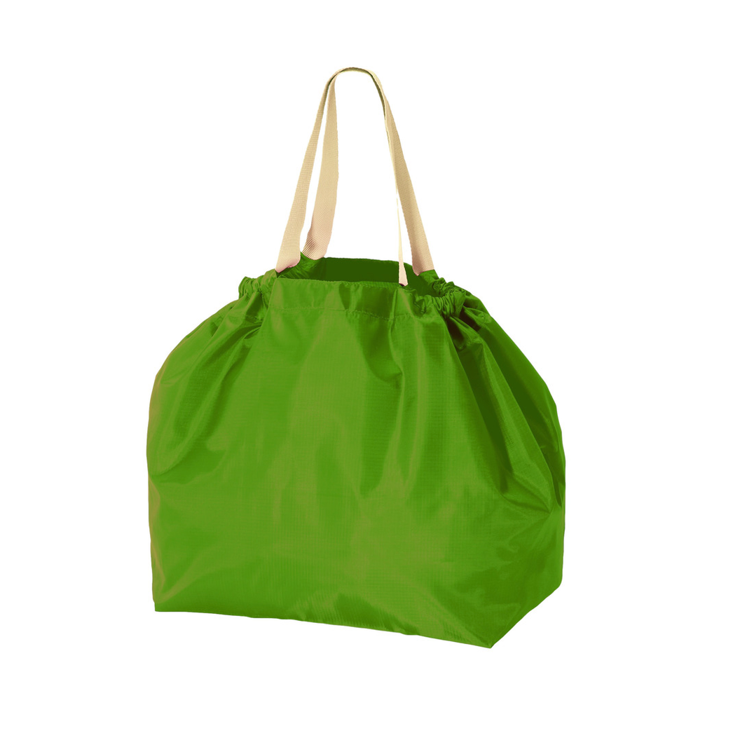 セルトナ・ポータブルラージ2WAY巾着トートはレジかごバッグと手提げの2通り仕様の巾着型トートバッグです。本体サイズは380mm×350mm×280mmです。