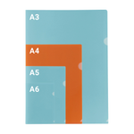 クリアファイルで最も一般的なのがA4クリアファイル。ビジネスシーンでの書類はA4サイズで作られることが多く、配布先で頻繁に使っていただけるため販促効果が高い商品です。素材も標準的なクリア素材だけでなく、光沢を抑えたマット素材、再生PPを使用したエコ素材と3種用意しており、目的に合わせたクリアファイルを作成いただけます。