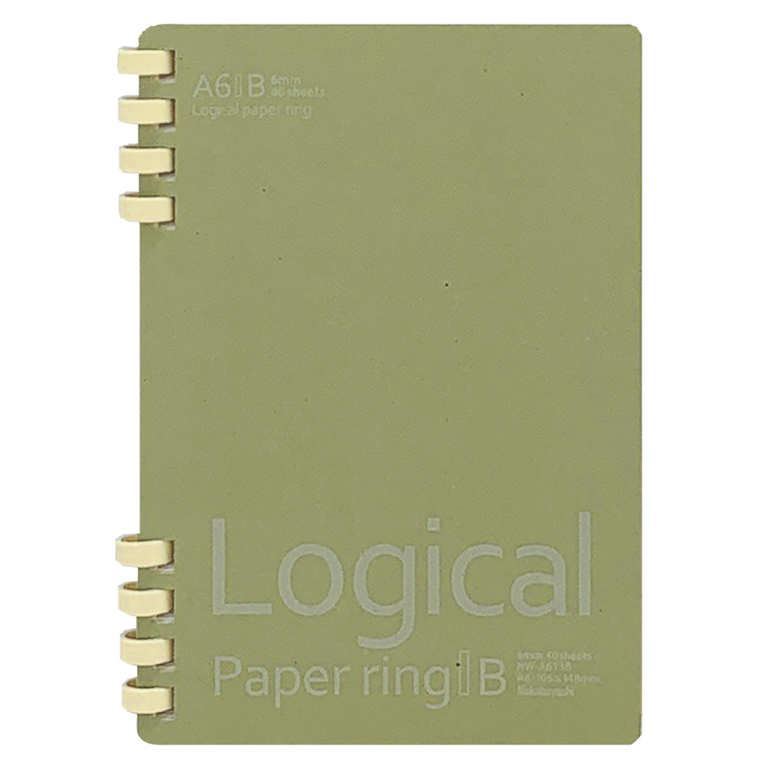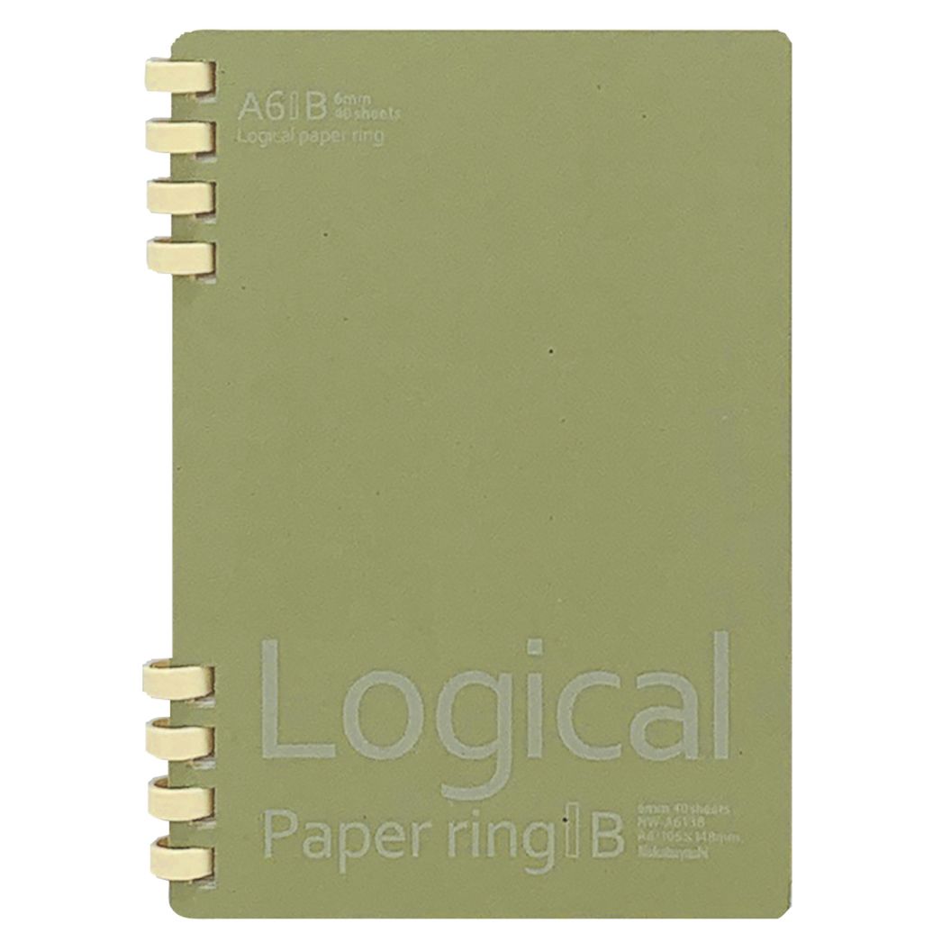 ナカバヤシ ロジカル・ペーパーリングノート A6 6mm罫は、綴じ具が紙でできた100%紙製のA6サイズのリングノートです。本文罫はまとめやすく見やすいロジカル罫を使用しています。全パーツを資源としてリサイクルできる100%紙製の環境配慮型製品です。罫線は6mmです。【FSC® 認証商品】