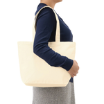 お問い合わせフォームはこちらキャンバスベーシックファスナートート(M)は12オンスでしっかりとした厚みがあり、ファスナー部分はベロ付きのトートバッグです。本体サイズが390mm×290mm×130mmで、A4サイズを収納できます。