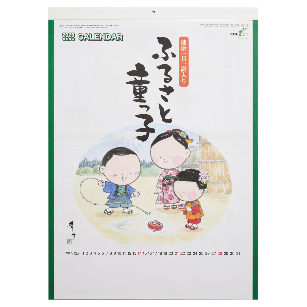 ふるさと童っ子 NB-831は、四季折々の行事を、童のイラストと共に描きこんだ壁掛けカレンダーです。俳句がほのぼのとした趣を添えています。健康一日一訓入りです。