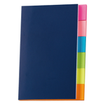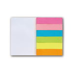 6+1 付箋セット 2サイズ7色は、蛍光6色のスティック付箋と白のメモ付箋が見開きになっている付箋セットです。閉じている時はスティック付箋の6色が見えアクセントになります。