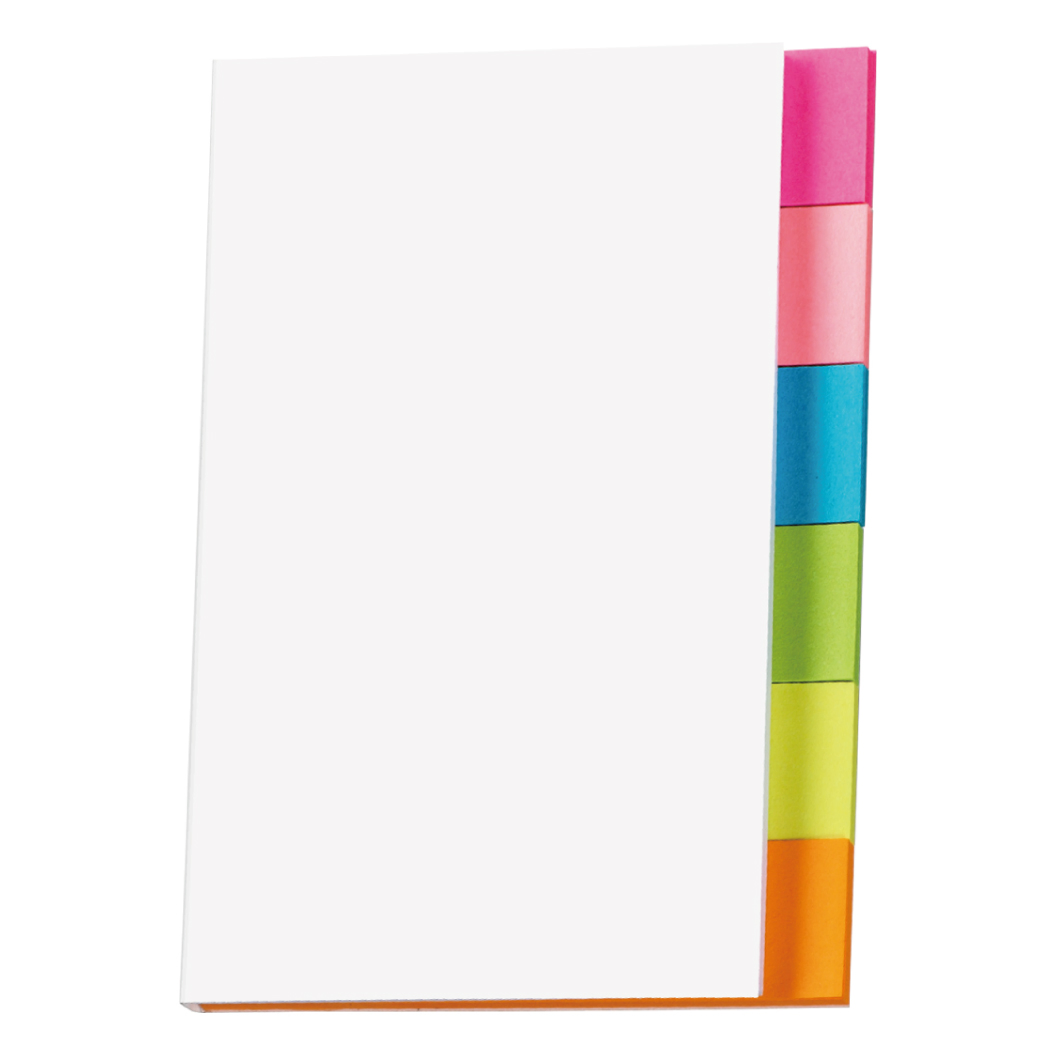 お問い合わせフォームはこちら6+1 付箋セット 2サイズ7色は、蛍光6色のスティック付箋と白のメモ付箋が見開きになっている付箋セットです。閉じている時はスティック付箋の6色が見えアクセントになります。