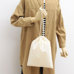 お問い合わせフォームはこちらA4サイズが入る、少し大きめのシンプルなコットン巾着です。女性用の靴やタオル・衣類も入るので、旅行時の収納に活躍します。旅館・ホテルのアメニティや記念品、ショップロゴなどを印刷したノベルティとして人気の商品です。