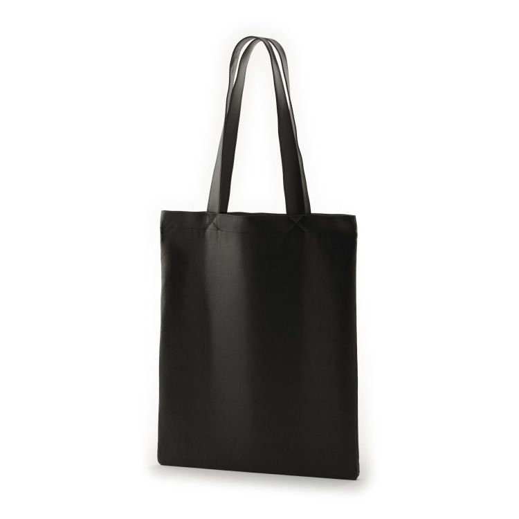 A4サイズのフラット(マチなし)なバッグです。持ち手が長いので肩掛けでき、展示会でのカタログ配布や、セミナー・オープンキャンパスでの資料配布用として人気の定番商品です。薄手で軽いのでお買い物用のエコバッグやサブバッグとして活躍します。