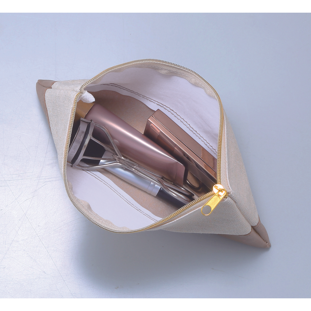 コスメやステーショナリーアイテムや通帳などマルチに役立つワイドなサイズ感が便利。