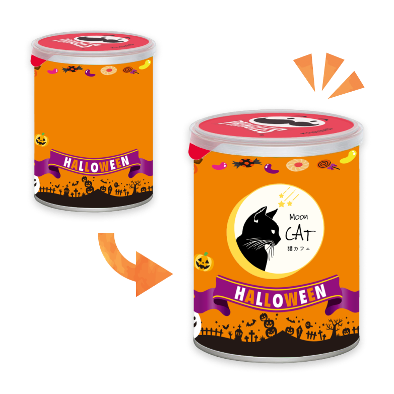 例)ハイチュウにプリングルズのキャラクターをデザインする など