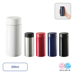 お問い合わせフォームはこちらシンプルなデザインとスタイリッシュなカラー展開が人気のドリンクボトルです。 ボトルは真空二層構造かつ、真空層内のステンレスには銅メッキ処理を行い輻射熱を抑えることで、 従来品より保温保冷効力がアップしています。 200ml・280mlのコンパクトな2サイズ展開で、 280mlはオフィスやランチ用としておすすめです。 また本体デザインを工夫したことで印刷範囲を大きく取ることができ、販促効果もばっちりです。 本体側面だけでなく、フタ部分にも印刷ができるため さまざまな案件やご希望にあわせたご提案をしていただけます。