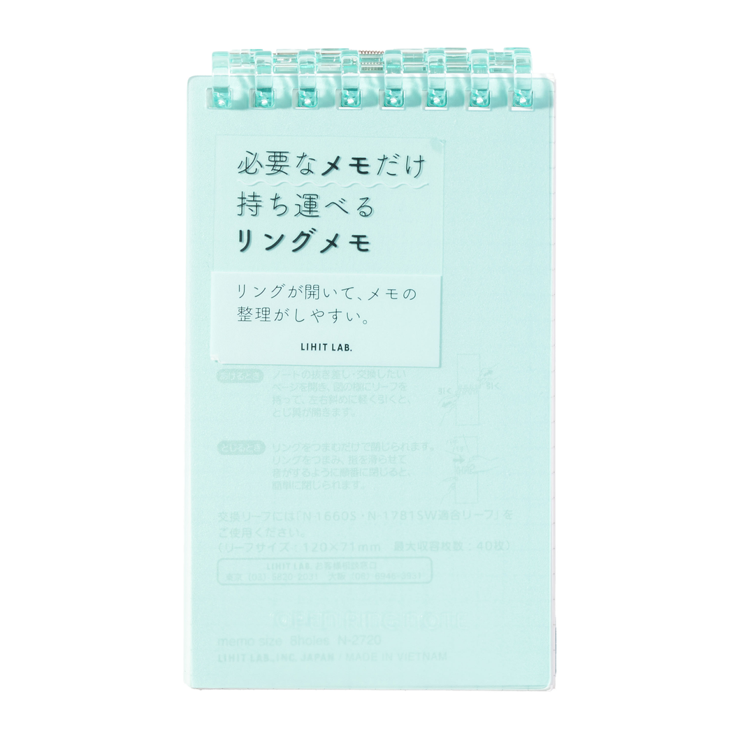 とじ具が開くのでリーフの差替えが可能。 とじ具は表紙の色に合わせた色透明。 360°折り返して使えるので省スペースで使いやすい。 ロゴはどんな持ち物にも合わせやすい空押し加工。 あけるとき:リーフを持ち、斜めに軽く引くと、とじ具が開きます。 とじるとき:リングをつまみ、指を滑らせて音がするように順番に閉じると簡単です。