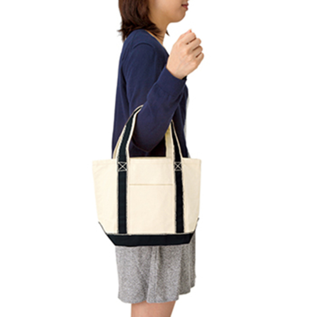 キャンバスバイカラートート(S)はベルトと底部分にアクセントカラーが施されたSサイズの外ポケット付きトートバッグです。