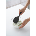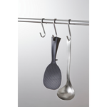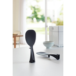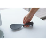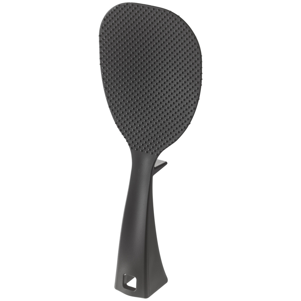 置き場所に困っても、立つ・置く・掛けると便利に収納しておけます。すくう面はお米がつきにくいエンボス加工。