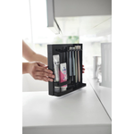 お問い合わせフォームはこちらサッと裏返すだけ!隠したい時すぐに隠せる歯ブラシ&チューブスタンド。シンプルなデザインでスッキリ整頓。歯ブラシ5本、歯磨き粉チューブ2本を収納できます。歯ブラシは掛けるだけの簡単収納。来客など隠したい時はサッと裏返して目隠し収納できます。まとめて移動ができて便利です。電動歯ブラシや替えブラシの収納にも。トレーは本体から外してお手入れすることができます。
