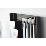 サッと裏返すだけ!隠したい時すぐに隠せる歯ブラシ&チューブスタンド。シンプルなデザインでスッキリ整頓。歯ブラシ5本、歯磨き粉チューブ2本を収納できます。歯ブラシは掛けるだけの簡単収納。来客など隠したい時はサッと裏返して目隠し収納できます。まとめて移動ができて便利です。電動歯ブラシや替えブラシの収納にも。トレーは本体から外してお手入れすることができます。