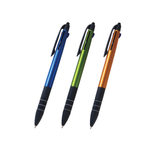 使いやすいスリムサイズの3色ボールペン(インク色:黒、赤、青)。背面にタッチペン付き。実用的な3色とタッチペンを合わせたボールペンです。 メタリックな質感の塗装を施したユニセックスカラーの取り混ぜです。 抜群のコストパフォーマンス!