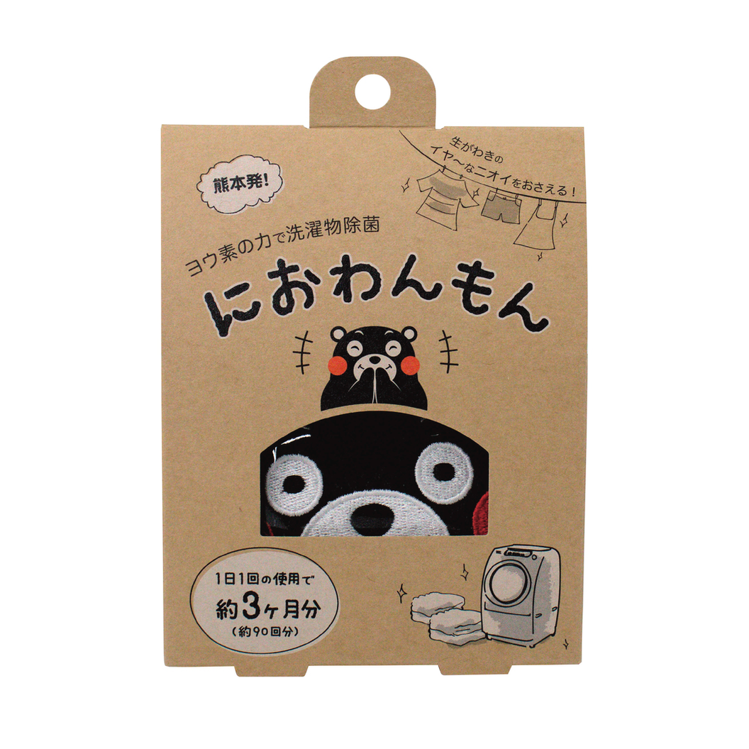 お問い合わせフォームはこちら洗濯機に入れるだけで衣類を除菌し、部屋干し時の不快な臭いを抑制します。かわいいくまモンフェイス!天然由来成分のヨウ素を使用した洗濯除菌剤です。洗濯の際に本製品を入れるだけで洗濯槽と洗濯物を同時に除菌します。衣服の嫌なニオイの原因のひとつである雑菌の繁殖を防ぐことで、洗濯物を清潔な状態に保ちます。衣服用洗剤や柔軟剤とも併用可能。 使用回数は90回(約3ヶ月)使用できて経済的です。