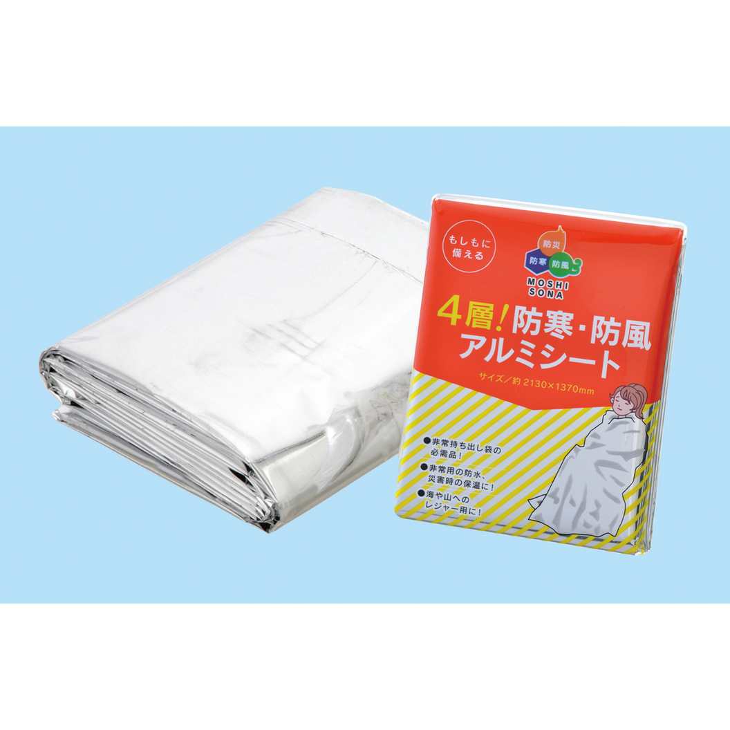 劣化しにくい4層構造!被災時の防寒対策に。防災セットの必需品・軽量コンパクトなアルミ緊急用シートです。 防水、防風用としてもお使いいただけます。