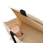 無駄を省いたスタイリッシュなデザインと実用的な収納力が魅力なバッグです。ランチバッグとしても使えるサイズ感でペットボトルや傘なども立てて収納できるスリーブ付き。大きなスリーブポケットには書類を入れることができます。キーホルダーなどを付けられるループ付きなので推し活バッグとしてもご活用頂けます。