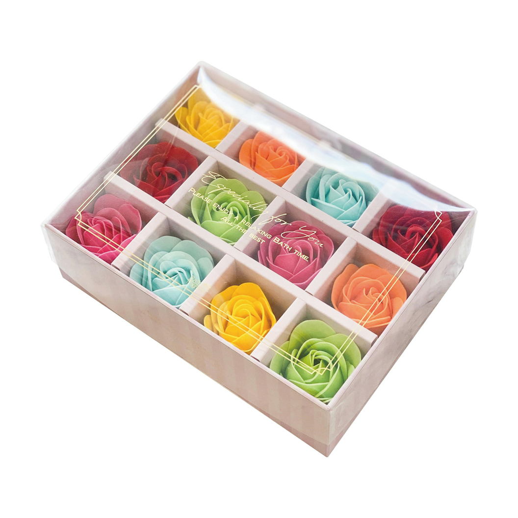 お問い合わせフォームはこちら見て香って、お風呂で楽しめる「花のカタチの入浴剤」カラフルに並んだバラの花がポップで可愛いボックス。ギフトとしても普段使いにも。 花びら一枚一枚がバスペタルになっており、お風呂に溶かしながらほのかな香りと泡をお楽しみいただけます。インテリアフレグランスとしてもやさしいフローラルの香りをお部屋でも楽しめます。