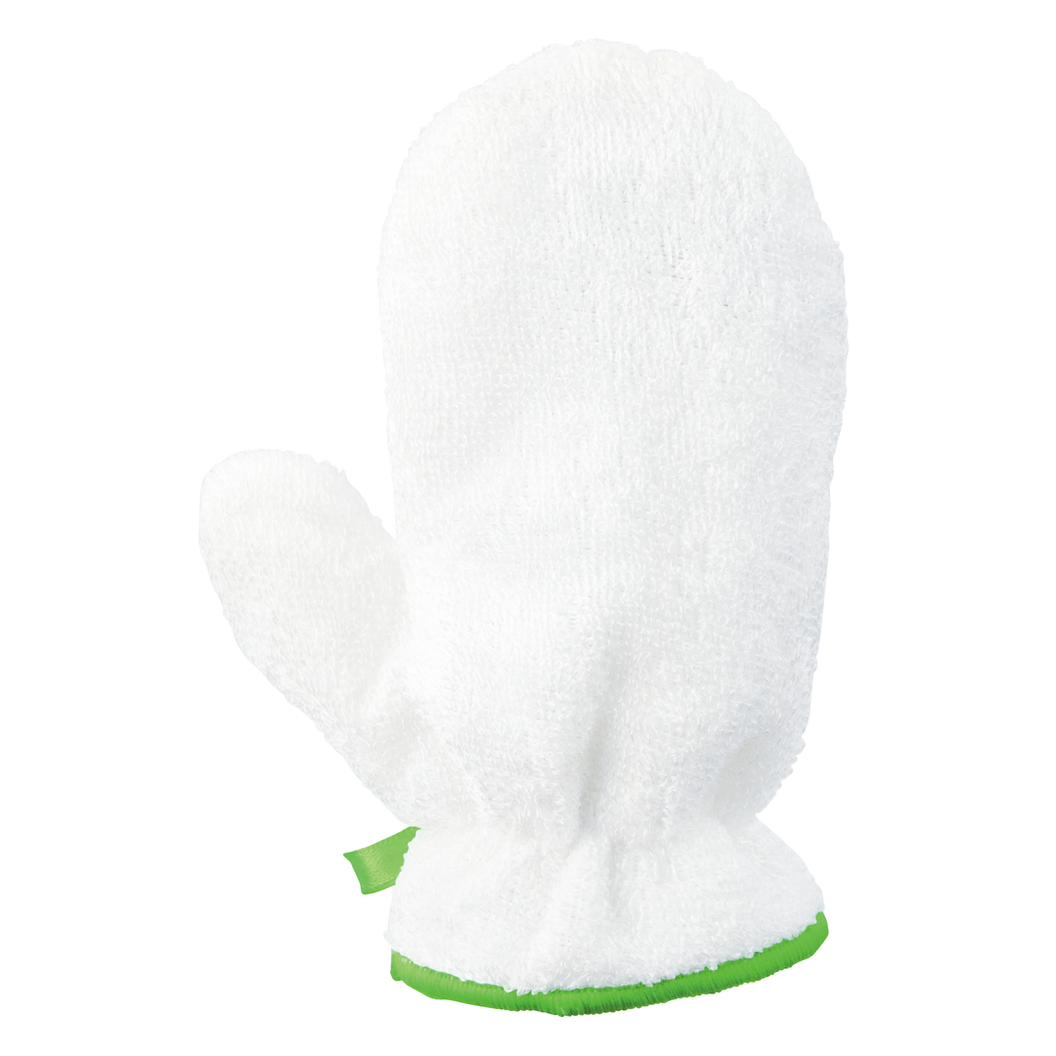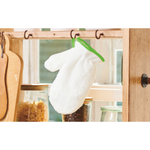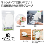 ミトンタイプで使いやすい!竹繊維配合のお掃除グローブ!手にはめてそのまま食器洗いやテーブル拭きができます。洗った後は吊り下げられるループ付き。内側はソフトなEVA素材を使用しています。