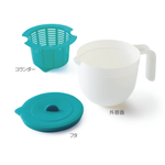 | 本体サイズ | 外容器/約19.6×13.5×11.8cm コランダー/直径13.3cm 高さ7.6cm フタ/直径13.8cn 高さ1.3cm |
