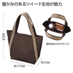 暖かみのあるツイード生地が季節感を演出します。斜めに配置されたハンドルがスタイリッシュなミニトート。