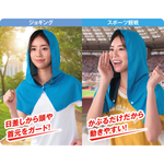 フードをすっぽりかぶって、日差しをガード!焼けやすい首筋や見落としがちな髪の日焼け対策にも。水に濡らしてしぼってクールダウン。日差しのほか、急な雨のときもサッとかぶれる!ジョギングやスポーツ観戦時にも大活躍です。フロントのボタンでずれずに快適。お子様の公園遊びに付き添うママたちにも。
