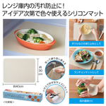使い方はアイデア次第!すべりにくくお手入れしやすいシリコン素材のマット。レンジ庫内の汚れ防止/ボウルなどのすべりどめ/ランチョンマット/瓶の蓋開け など、使い方いろいろ!ハサミでお好きなサイズにカットしたり、まるごと水洗いすることも可能です。