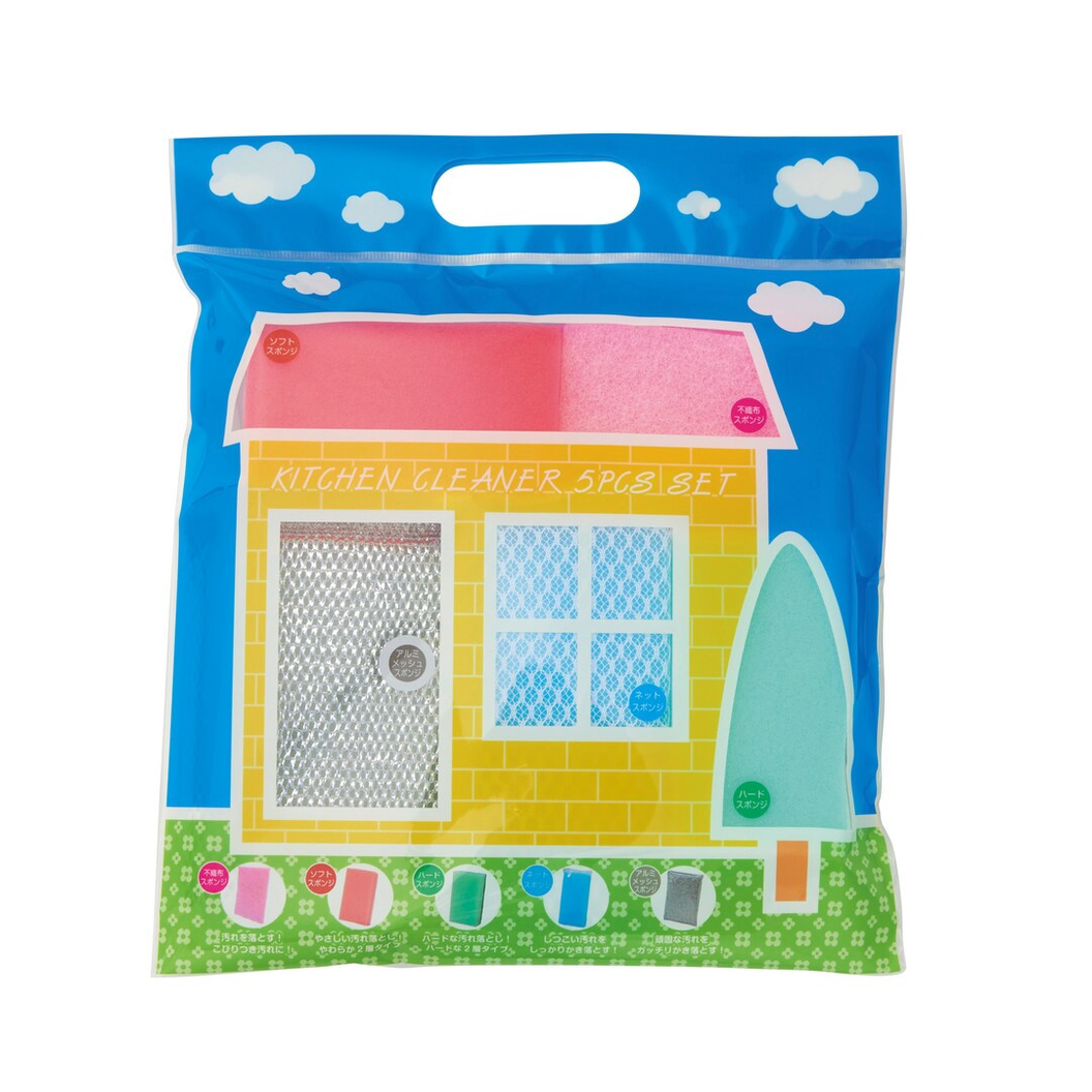 用途別に使えるキッチンスポンジをお家のデザインのパッケージに詰めました告知物でもディスプレイでも思わず目を惹くかわいいパッケージと、実用性も抜群のスポンジセットです。