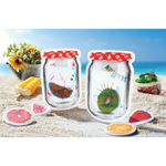 瓶の中にフルーツが!?飾って使って二度おいしい♪リアルなフルーツプリントのふせんが3種類ずつ入ったジャーパックは、ふせんを使い終わった後も小物入れとして使えます(食品を直接いれないでください)。思わずSNSにアップしたくなる、ビジュアル自慢の商品です♪